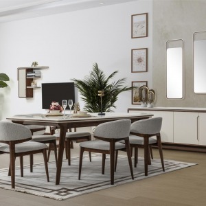 Cadillac Yemek Odası Takımı, ferah oturum alanı ve ergonomik tasarımı sayesinde yemek deneyimlerinizi daha keyifli hale getirir. Masanın geniş yüzeyi, yemeklerinizi rahatlıkla sunmanıza imkan tanırken, şık sandalyeleriyle birlikte davetkar bir atmosfer yaratır.