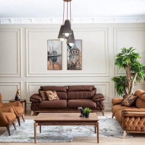 Maserati Kahverengi Koltuk Takımı, sıcak kahverengi tonları ve zarif tasarımıyla yaşam alanlarınıza sofistike bir hava katıyor. Hem modern hem de klasik detayları bir araya getiren bu koltuk takımı, evinize sıcaklık ve şıklık getiriyor.